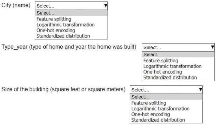 An ML engineer is working on an ML model to predict the prices of similarly sized homes. The model will base predictions on several features The ML engineer will use the following feature engineering techniques to estimate the prices of the homes:
