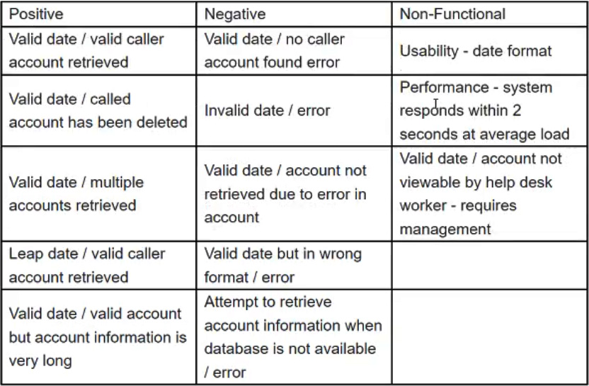 For instance, test case 1 states "Enter a valid date and verify that the account retrieved matches the birth date entered." This is vague. What does "matches" mean? What specific fields should match? What data source is being used for comparison? A better test case would specify, "Enter 01/01/1990. Verify that the account retrieved displays Name: John Doe, Birthdate: 01/01/1990, Account Number: 12345."