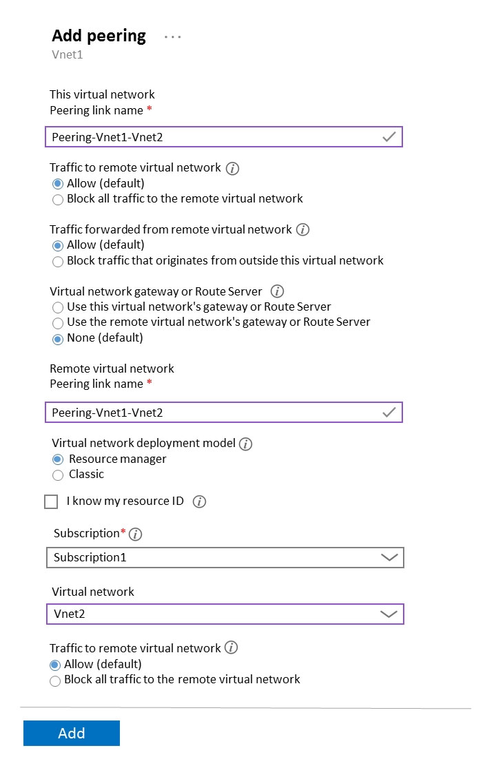- Statement 2: Resources in Vnet2 can communicate with resources in the on-premises network. - No. There is no gateway transit configured, and peering itself does not extend connectivity to the on-premises network. Gateway transit would be required for this, as per the provided documentation.
