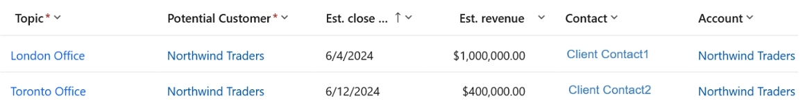 Client Contact1 is the primary contact for the Northwind Traders’ account. There are two other client contacts with whom the Northwind account team regularly engages - Client Contact2 and Client Contact3.