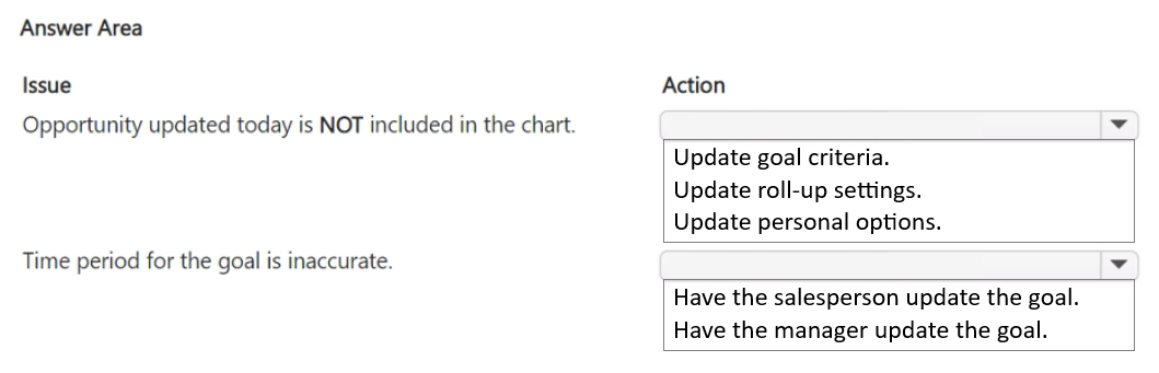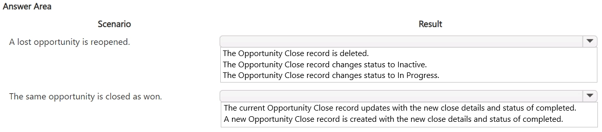 The base currency for all opportunities in the system is US dollars (USD). The administrator has NOT enabled installed premium Sales Insights features. All users have Premium licenses. Contoso Ltd. uses Exchange Online for email.
