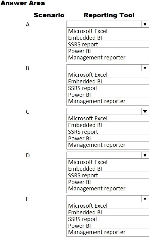 - Scenario D: Power users need a free-form tool for aggregated data to be used internally and externally. Excel is suitable for quick analysis and sharing. While Power BI could be used, Excel might be preferred for its familiarity and ease of ad-hoc reporting by power users.