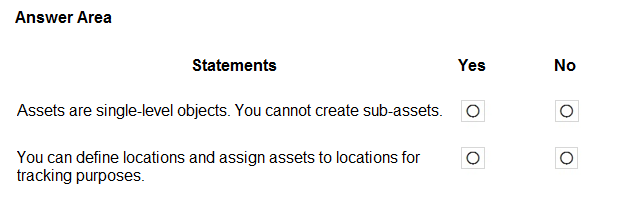 A company uses Dynamics 365 Supply Chain Management. The company plans to implement Asset Management.
