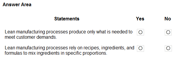 Alternative opinions, such as suggesting both options are 'No' or both are 'Yes', did not gain widespread agreement in the discussion and are contradicted by established manufacturing concepts and official Microsoft documentation. The clear distinction between the operational characteristics of Process Manufacturing and the philosophical tenets of Lean manufacturing (especially waste reduction) is critical for understanding Dynamics 365 Supply Chain Management capabilities.