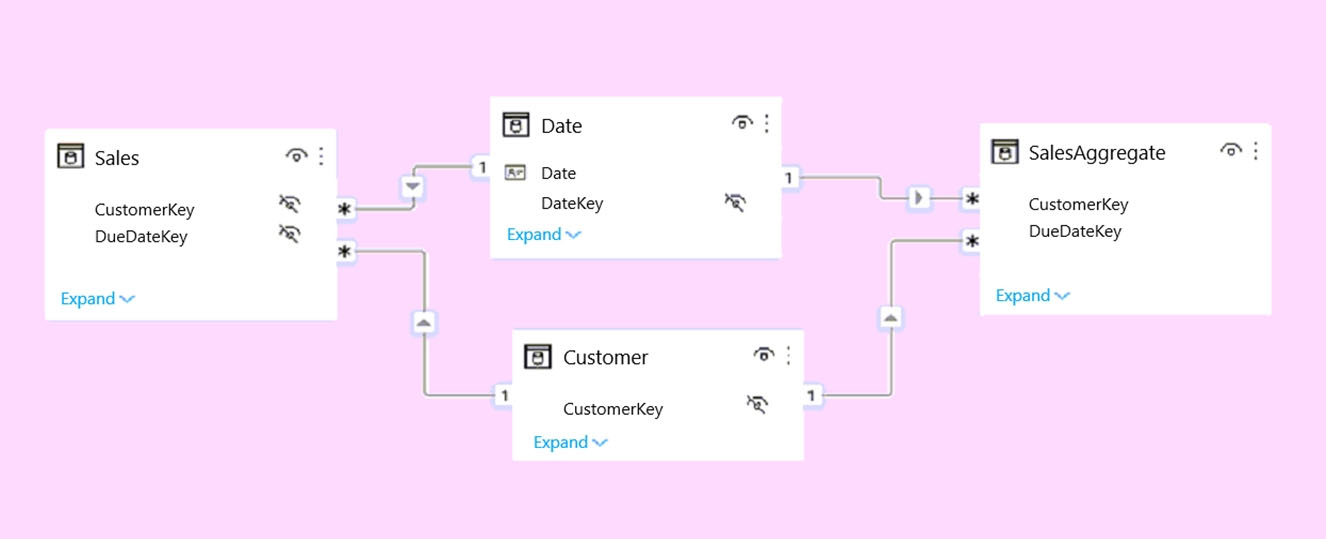 - SalesAggregate: Import - The SalesAggregate table should use Import storage mode.