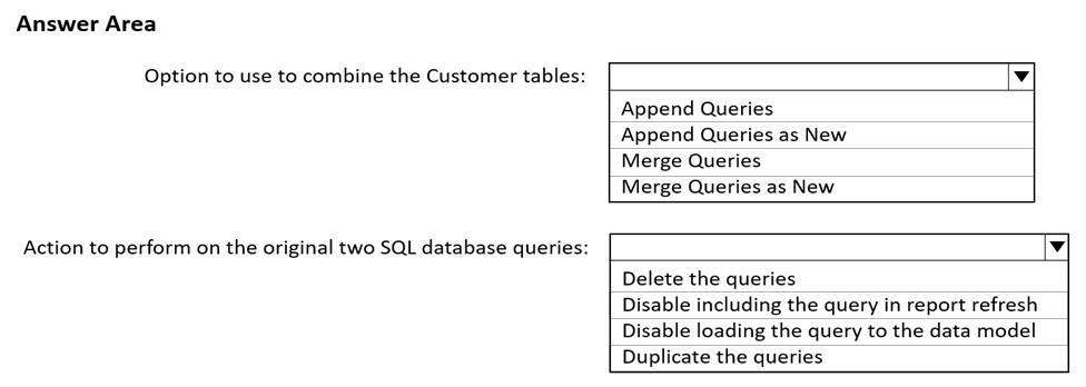 You import two Microsoft Excel tables named Customer and Address into Power Query. Customer contains the following columns:
