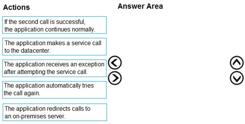 The other sequences are incorrect because they do not follow the logical order of a retry mechanism. Redirecting to on-premises, as implied by altering the sequence, is not part of a standard retry scenario and introduces unnecessary complexity and potential points of failure, contradicting the business continuity goal.
