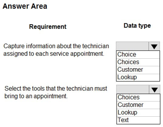 You are designing a Power Platform solution for a company that provides in-home appliance maintenance. When a customer schedules a service appointment, a dispatcher assigns one technician for a specific time and location.