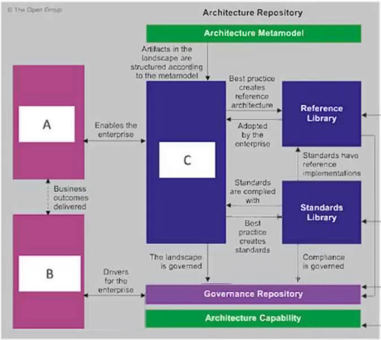 - A. A-Solution Landscape, B-Architecture Requirements Repository, C-Architecture Landscape